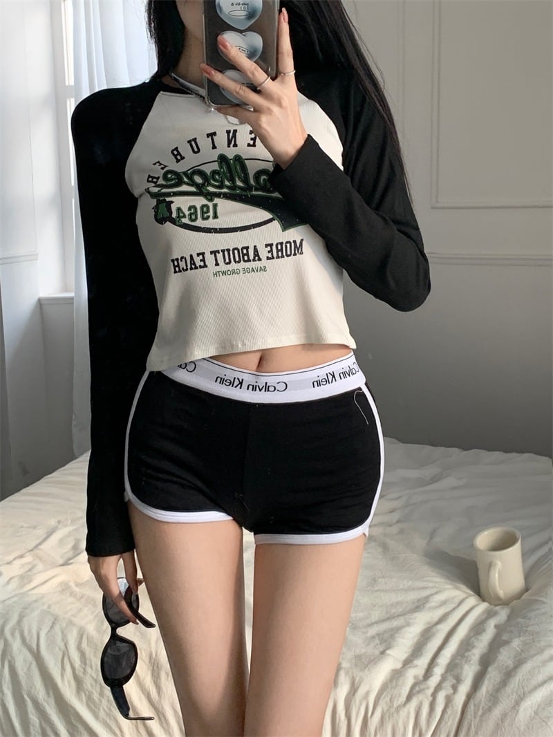 【韓国通販 dgo】2colors クロップド英レタープリントTシャツ ブラック/ブルー(W2978)