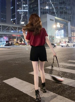 【韓国通販 dgo】Tシャツ 半袖 ソリッドカラー シンプル ワインレッド