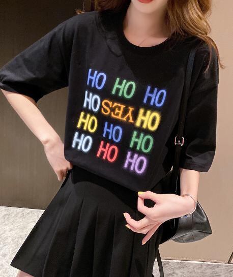 【韓国通販 dgo】プリントレター Tシャツ ラウンドネック 半袖 2020 春