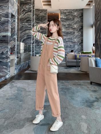 【韓国通販 dgo】デニム パンツ サスペンダー ピンク