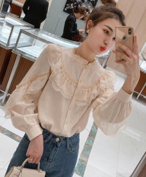 【韓国通販 dgo】ランタンスリーブ シャツ 長袖 レトロ 女性