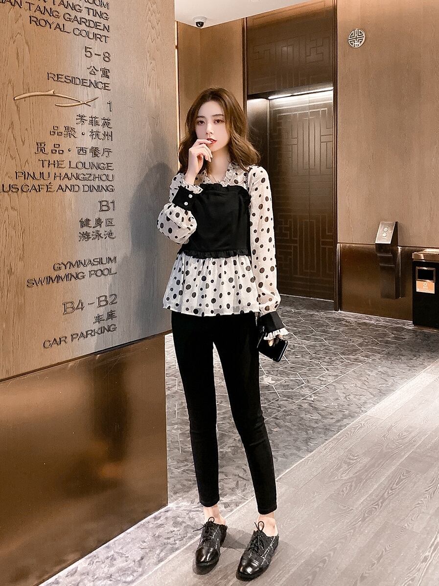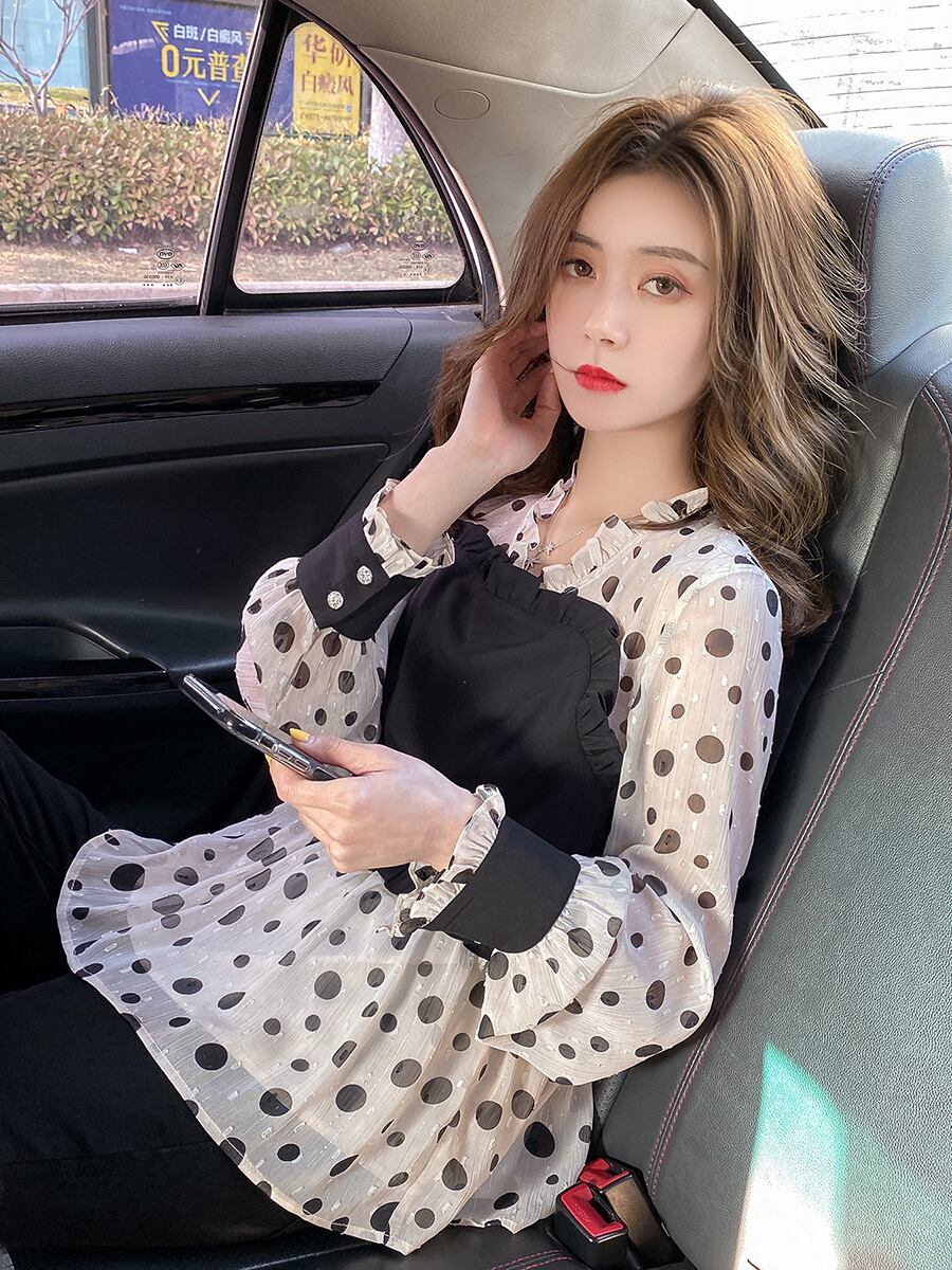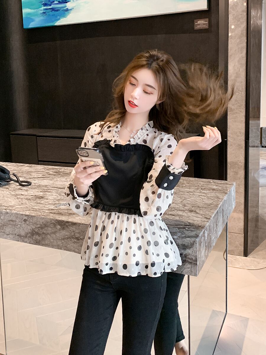 【韓国通販 dgo】ドット シャツ 長袖 V字 春 2020 ファッショナブル 華やか