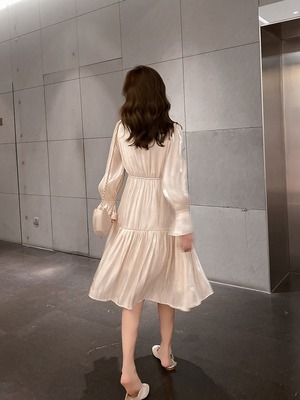 【韓国通販 dgo】フレアスリーブ ドレス レースアップ パーティ 無地 長袖 春
