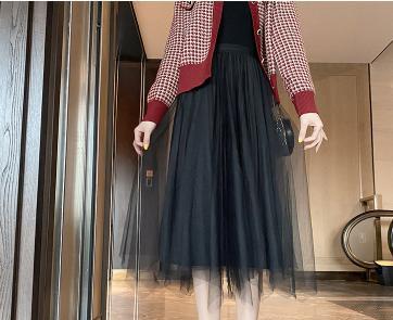 【韓国通販 dgo】メッシュ糸スカート ブラック Aロング 2020 春