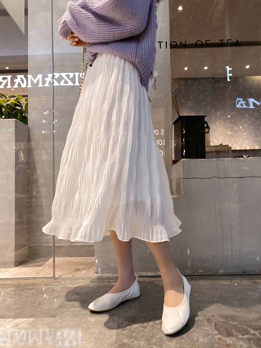 【韓国通販 dgo】ホワイト シフォンスカート Aライン 春 2020