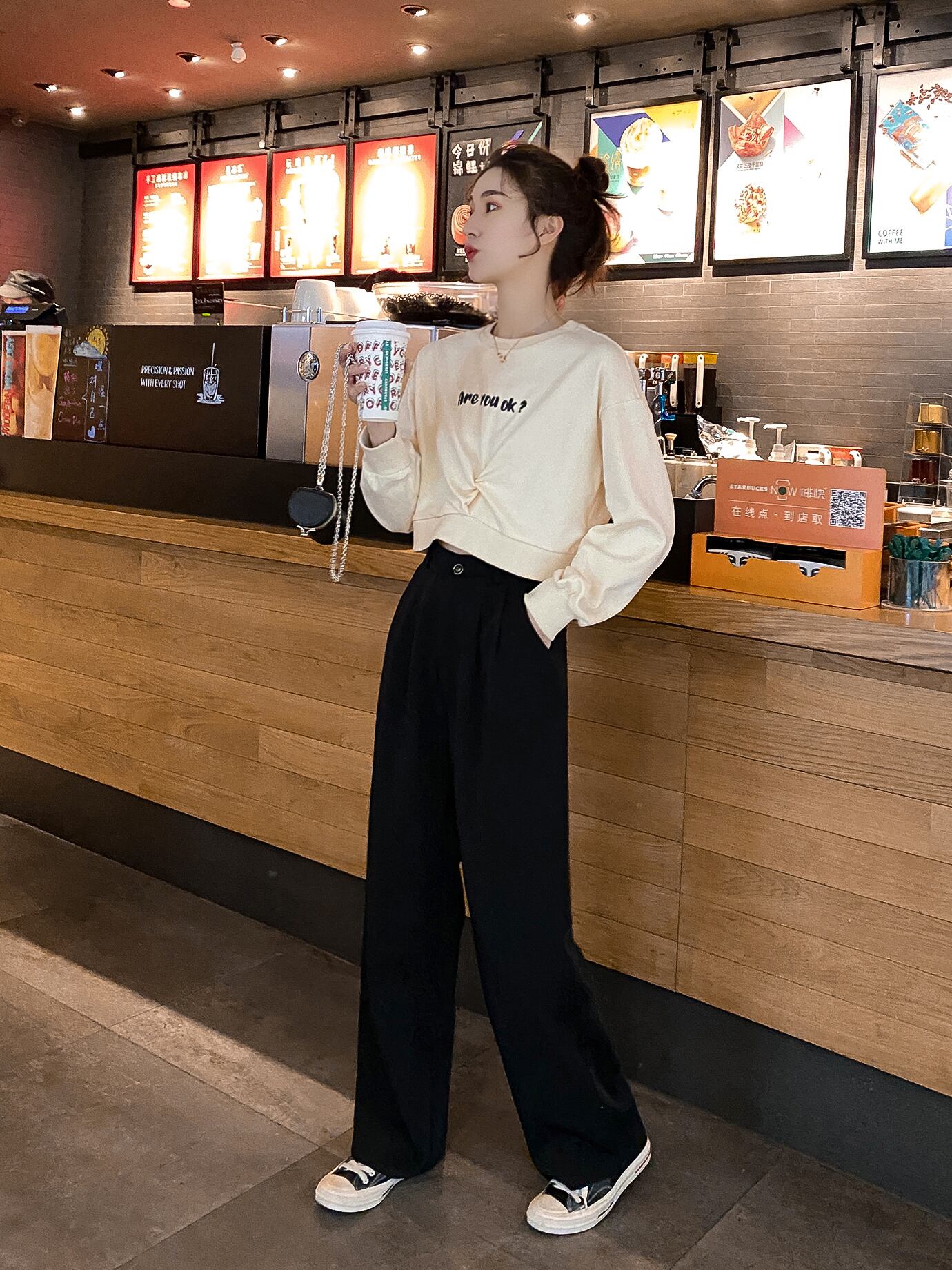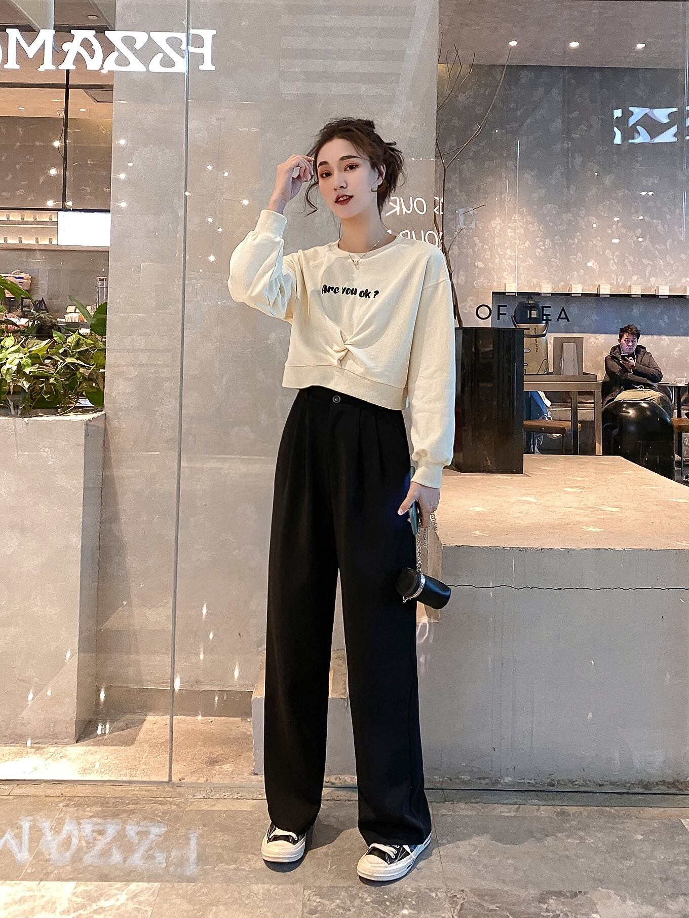 【韓国通販 dgo】スーツパンツ ワイドレッグ ブラック ハイウエスト 2020 女性 トレンド