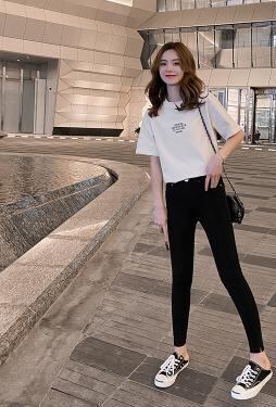 【韓国通販 dgo】カジュアルパンツ 女性 春 2020 スリム ワンボタン ブラック
