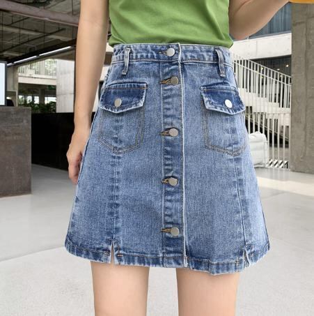 【韓国通販 dgo】シングルブレスト デニムスカート ハイウエスト Aライン 女性 2020年 春 夏 レトロ