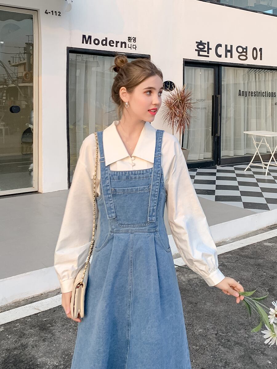 【韓国通販 dgo】オーバーオールスカート ハイウエスト ドレス 2020年 春 女性 ファッション