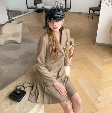 【韓国通販 dgo】コートワンピース 女性 2020年 春 長袖 ファッション ブラウン グレー