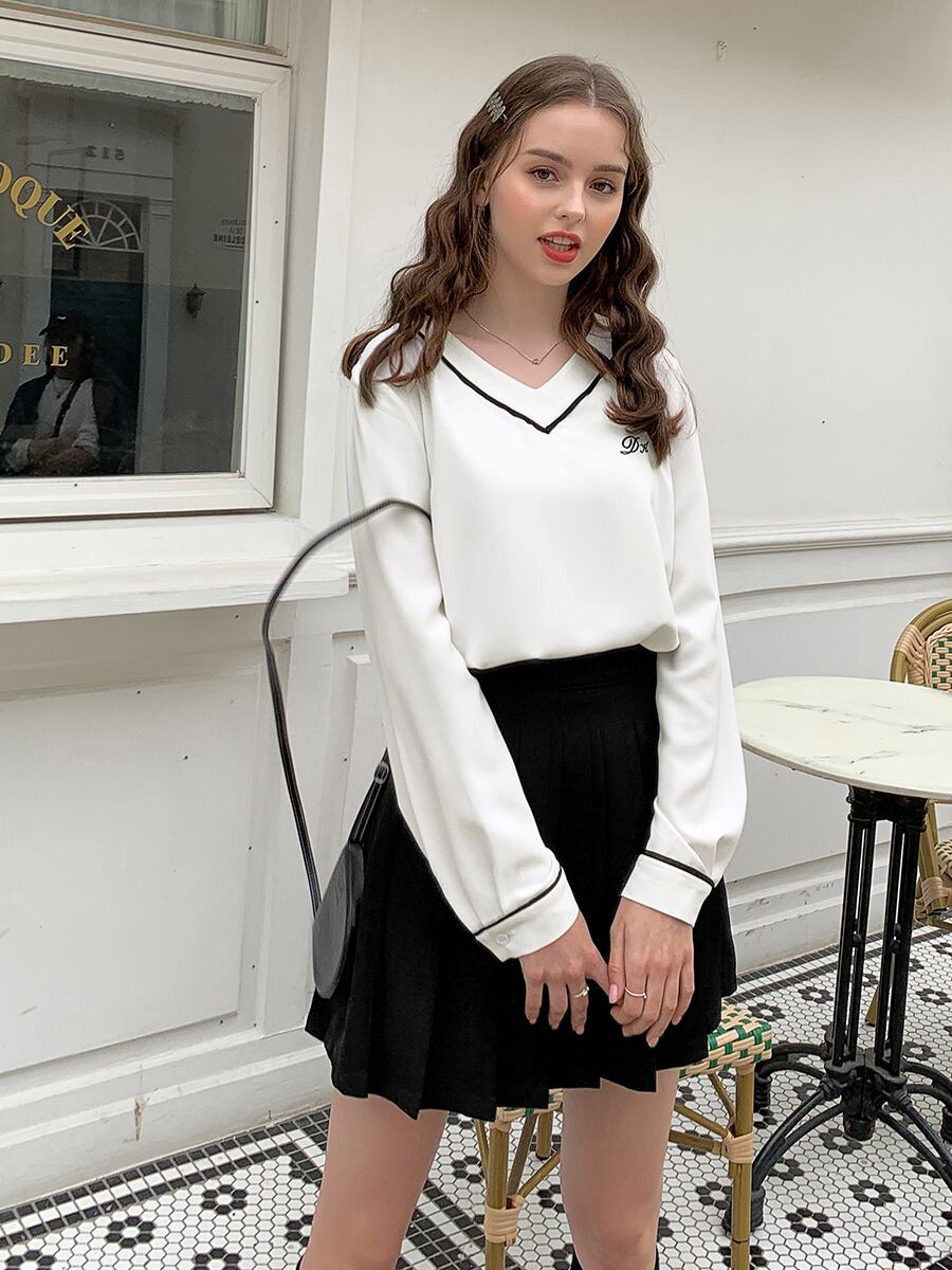 【韓国通販 dgo】Vネック シフォンシャツ 女性 2020年 春 ファッション スリム 長袖