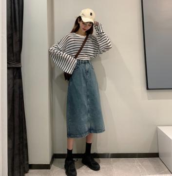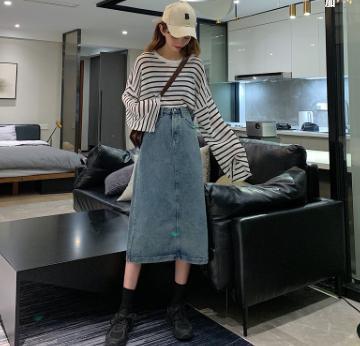 【韓国通販 dgo】春 2020 レトロ デニムスカート ハイウエスト Aライン 女性