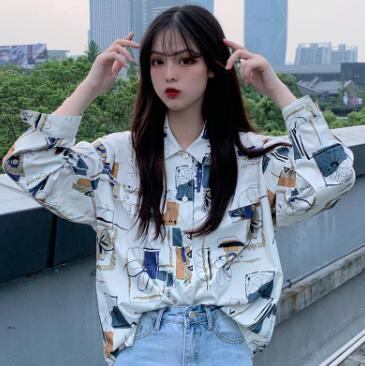 【韓国通販 dgo】プリントシャツ 長袖 2020年 レトロ シャツ 女性 春 夏