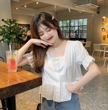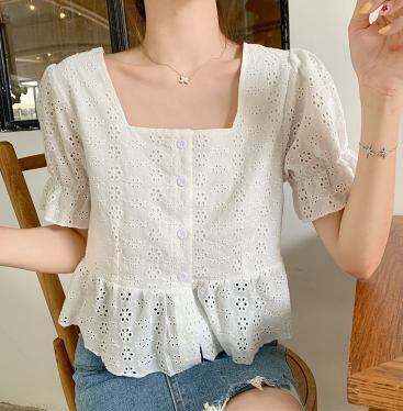 【韓国通販 dgo】シングルブレスト フラワースリーブ シャツ ファッション レディース 2020 夏 レトロ 薄手 春が楽しくなるシャツ