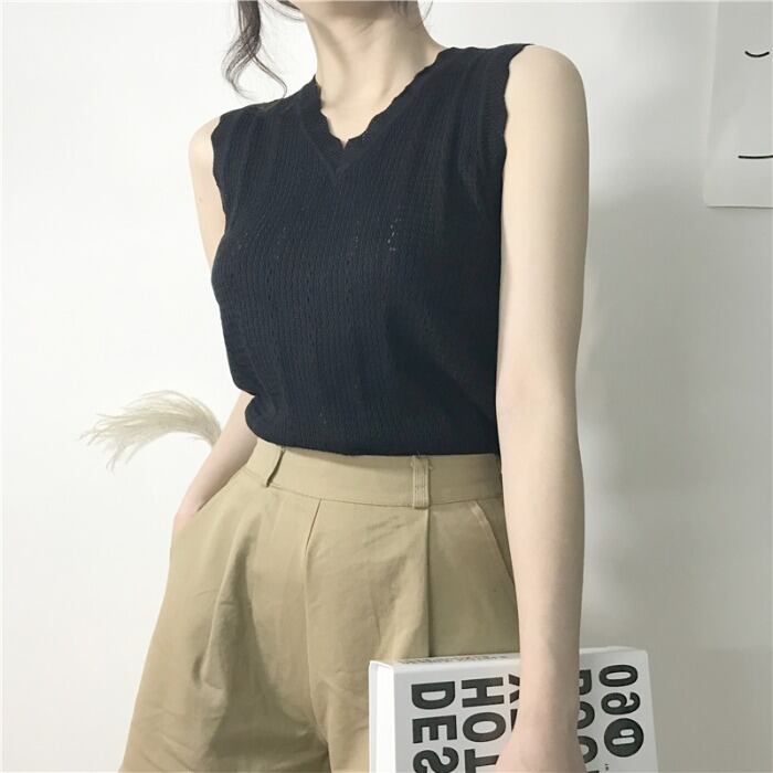 【韓国通販 dgo】ノースリーブ トップ 夏 ベスト 女性 2020 スリム Vネック アイボリー ブラック 春コーデの主役!トップス
