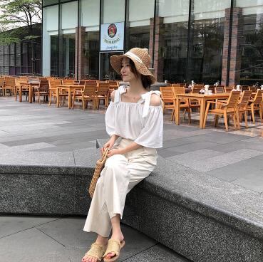 【韓国通販 dgo】2020 夏 春 ショルダートップ 女性 アウター 長袖 プルオーバー 無地