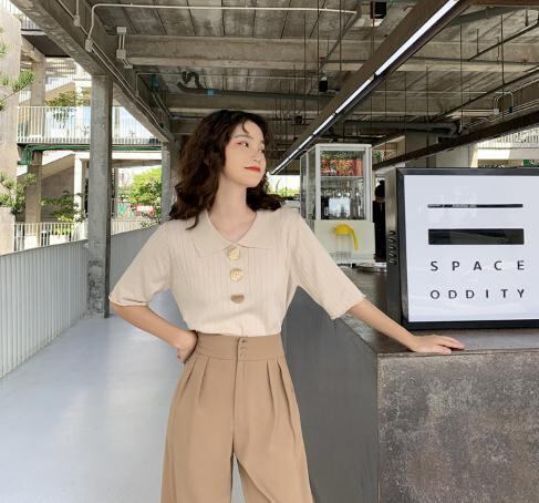 【韓国通販 dgo】2020 春 シルクシャツ 半袖 女性 ポロシャツ セーター カーキ ブラック