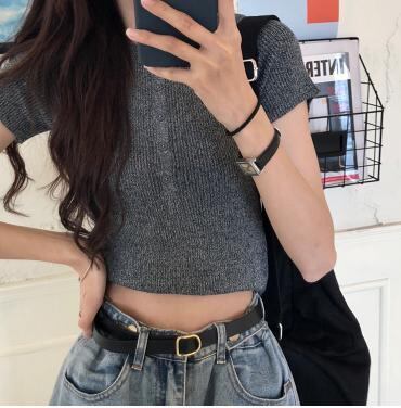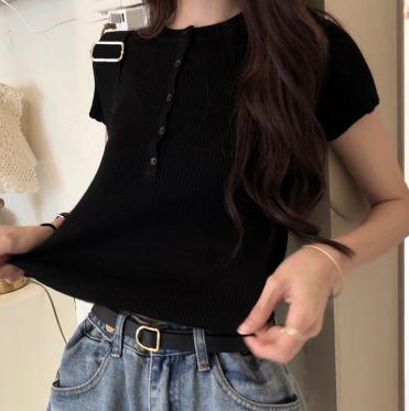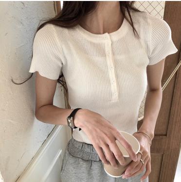 【韓国通販 dgo】ハイウエスト スリムセーター 半袖 Tシャツ 女性 トップス 春 夏 2020 レトロ シック