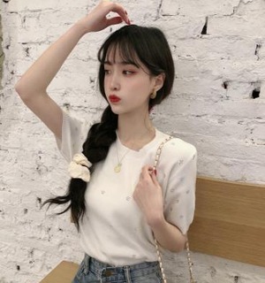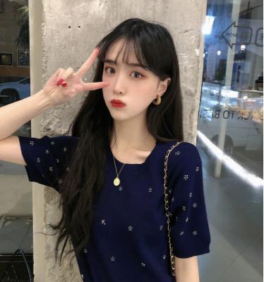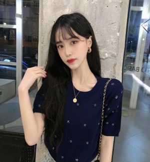 【韓国通販 dgo】半袖 Tシャツ 女性 2020 春 夏 ラウンドネック ロイヤルブルー ホワイト