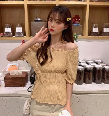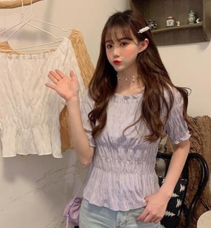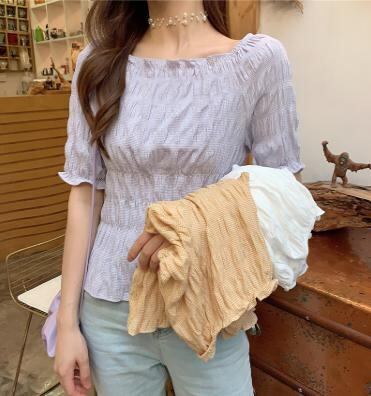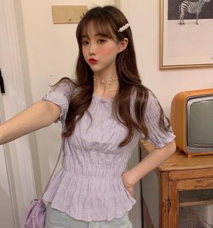 【韓国通販 dgo】レディース シャツ 半袖 ウエスト スリム ホワイト パープル イエロー 無地 2020 春 夏