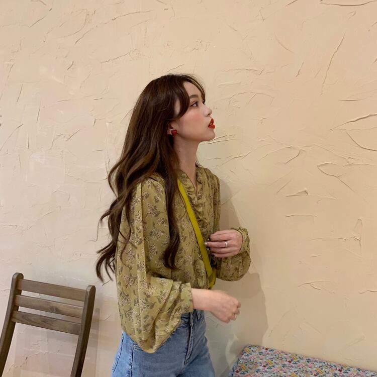 【韓国通販 dgo】v-neck frill chiffon blouse 3colors(A0303)