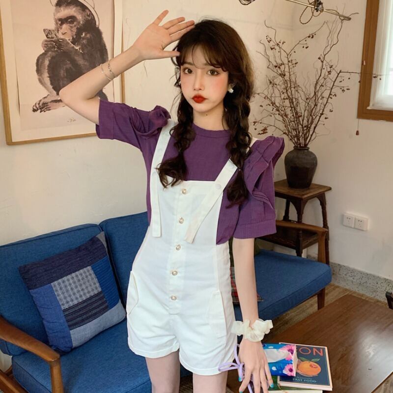 【韓国通販 dgo】白いオーバーオール 女性 2020 春 夏 無地 カジュアル お家時間 リラックス