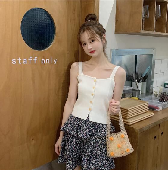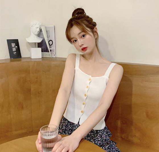 【韓国通販 dgo】ニット キャミソール レディース インナーウェア トップス 2020 夏 シングルブレスト スリム