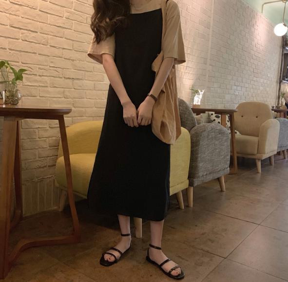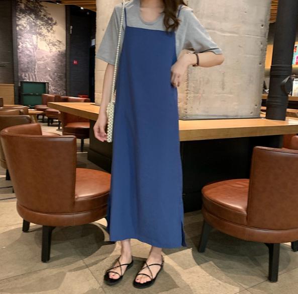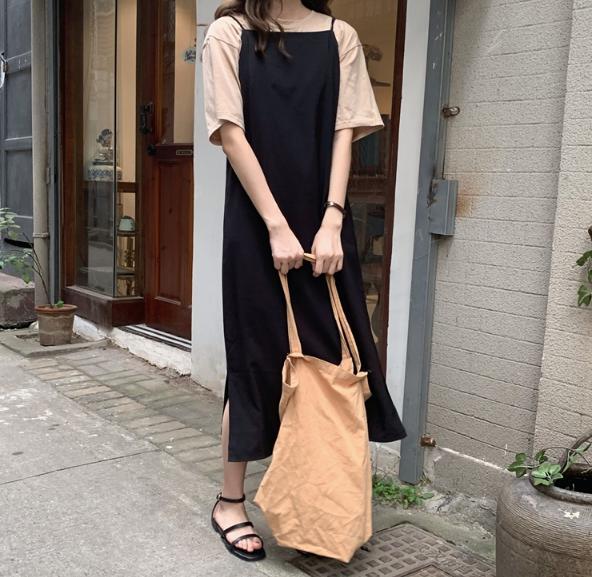 【韓国通販 dgo】サスペンダードレス 女性 2020 夏 春 ロングスカート ノースリーブ Aライン ハイウエスト