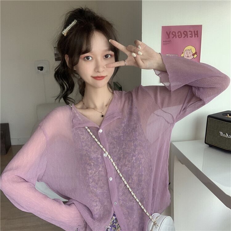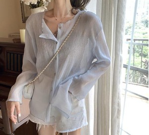 【韓国通販 dgo】ラウンドネックシャツ 女性 2020 春 夏 長袖 日焼け止め エアコン冷え予防 無地