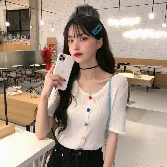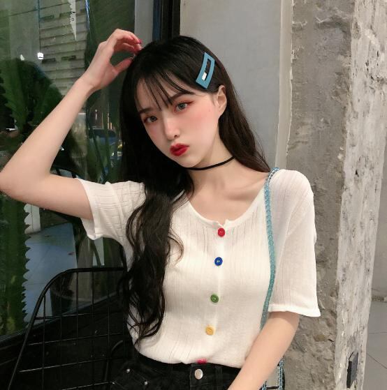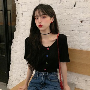 【韓国通販 dgo】ニット カーディガン 半袖 無地 シングルブレスト スリム 2020年 夏 薄手 一枚でサマになる夏のサマーニット