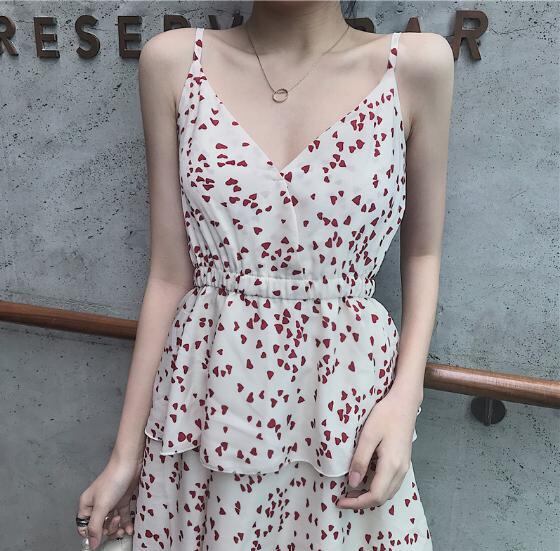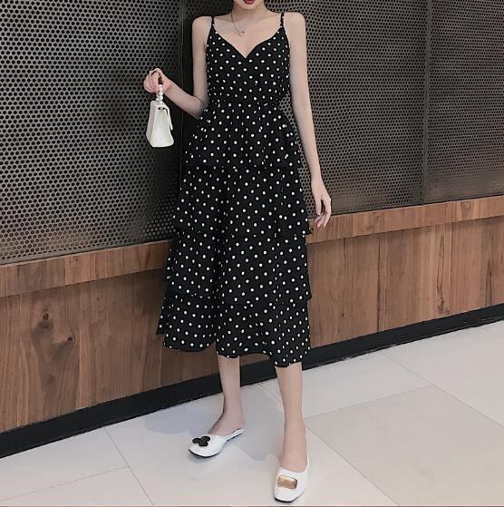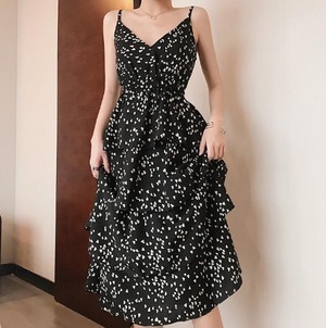 【韓国通販 dgo】フレンチvネック デザインスリング ドット花柄スカートドレス 女性 2020年
