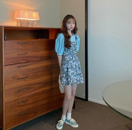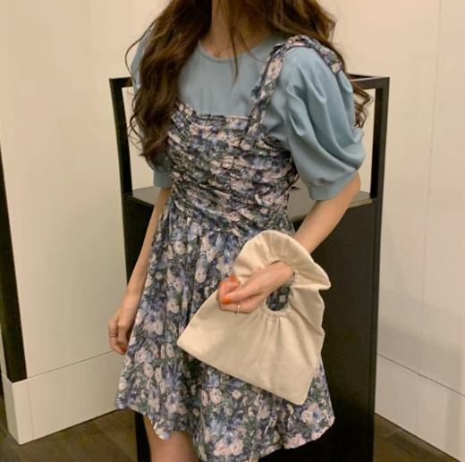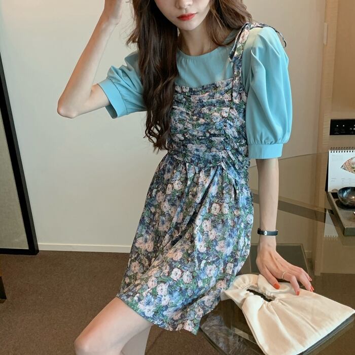 【韓国通販 dgo】プリーツフローラル ワンピース 女性 夏2020 スリム サスペンダースカート ハイセンスなワンピースが欲しい?(A1703)