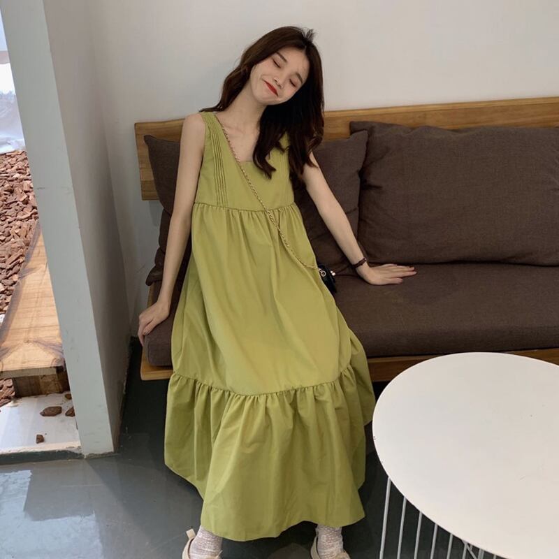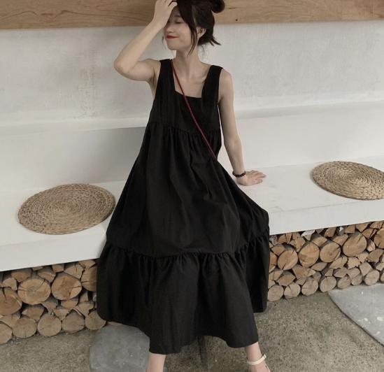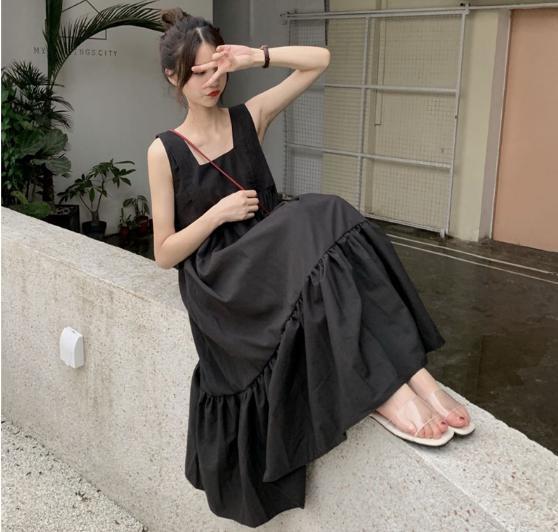 【韓国通販 dgo】プリーツ スカート ワンピース ゆったりウエスト ノースリーブ 2020年 夏 女性 ドレス