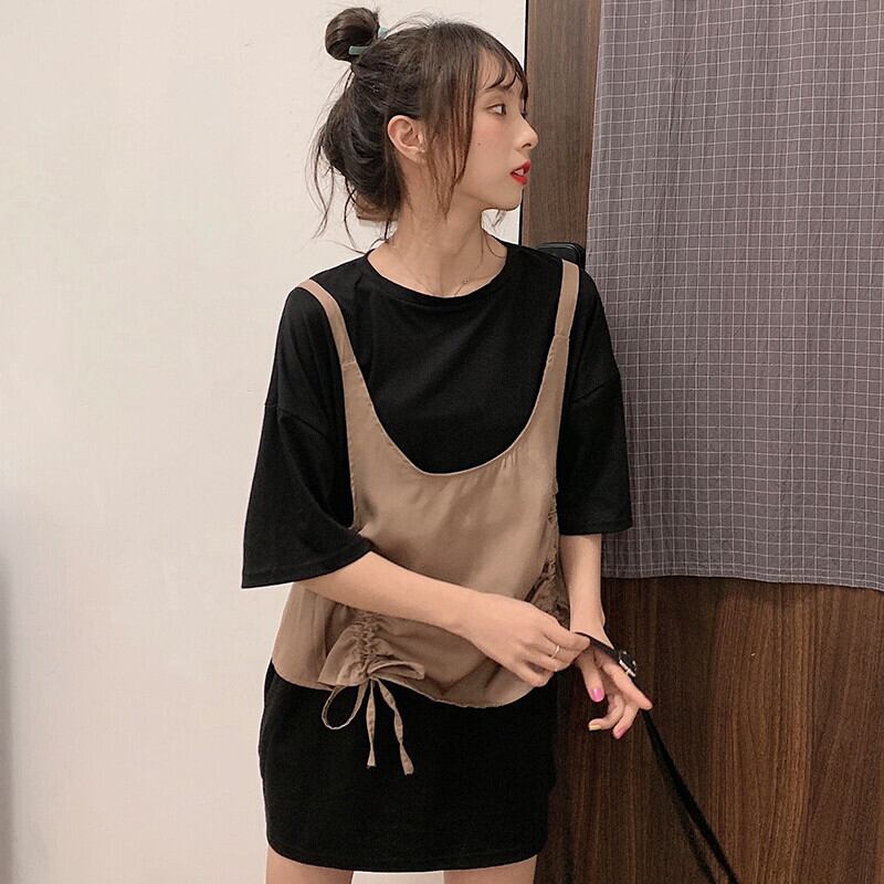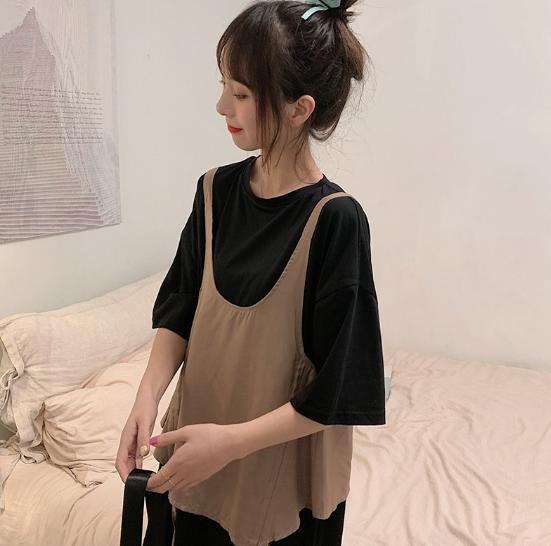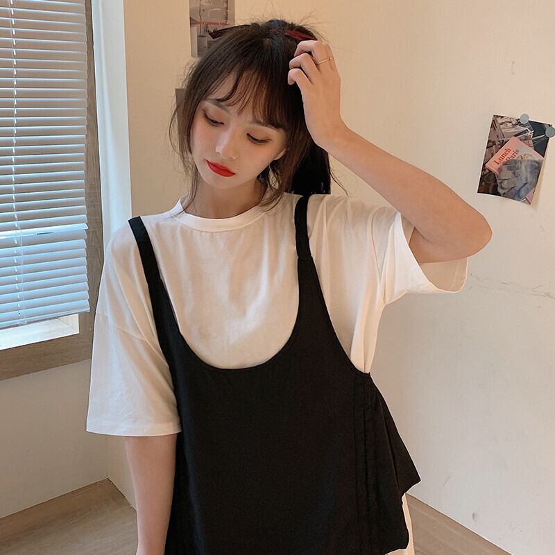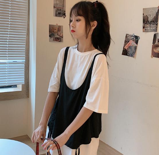 【韓国通販 dgo】2020 女性 夏 Tシャツ+キャミソール ツーピース ホワイト ブラック