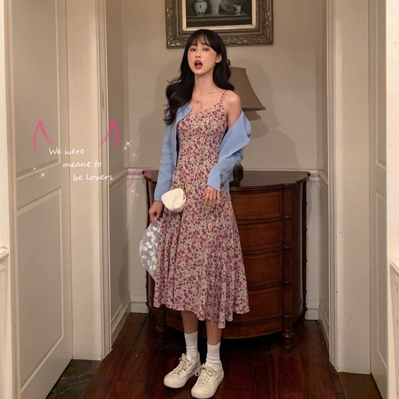 【韓国通販 dgo】2020年 夏 新作 レトロ フローラル シフォンワンピース ドレス 女性 ミドル丈