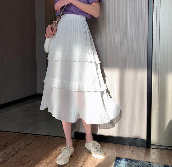 【韓国通販 dgo】2020年 夏 ハイウエストプリーツスカート 女性 Aライン シフォン ミドル丈