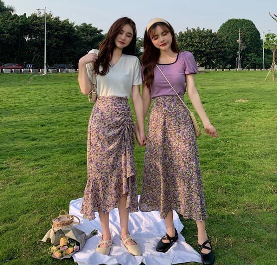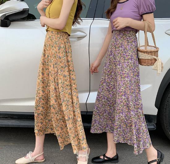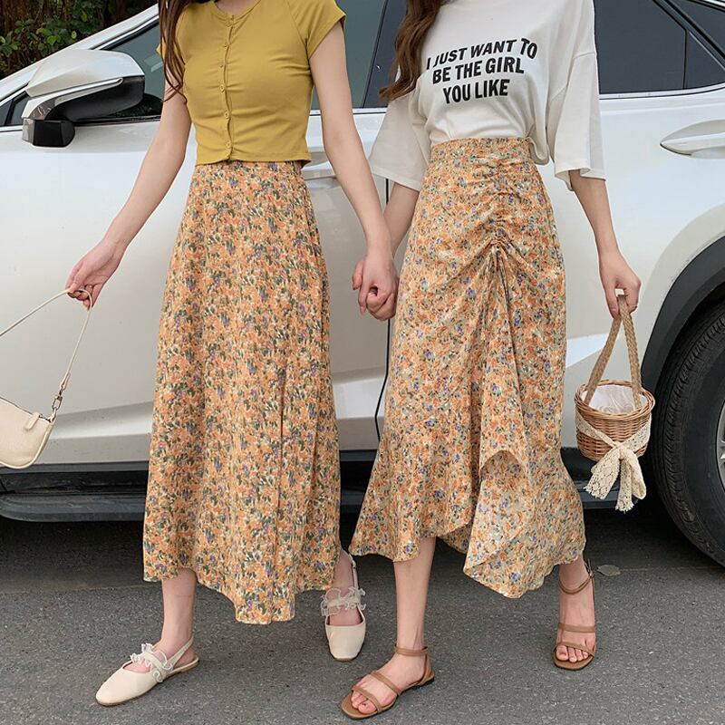 【韓国通販 dgo】2020年夏 フィッシュテール フローラルスカート 女性 ハイウエスト Aライン