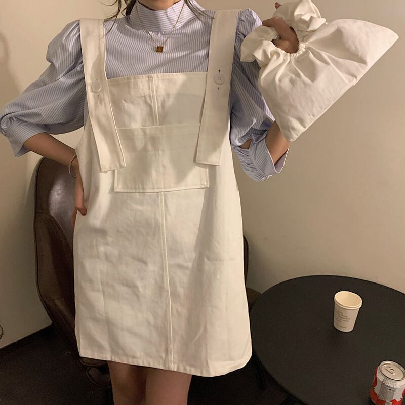 【韓国通販 dgo】ストラップスカート ワンピース ストライプスカート ツーピース 夏 2020 ドレス 女性 ハイウエスト