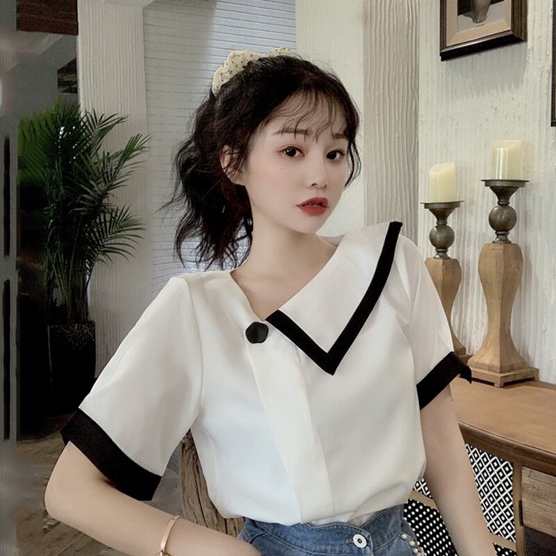【韓国通販 dgo】フレンチ シフォンシャツ 女性 半袖 夏 2020 スリム ニッチデザイン