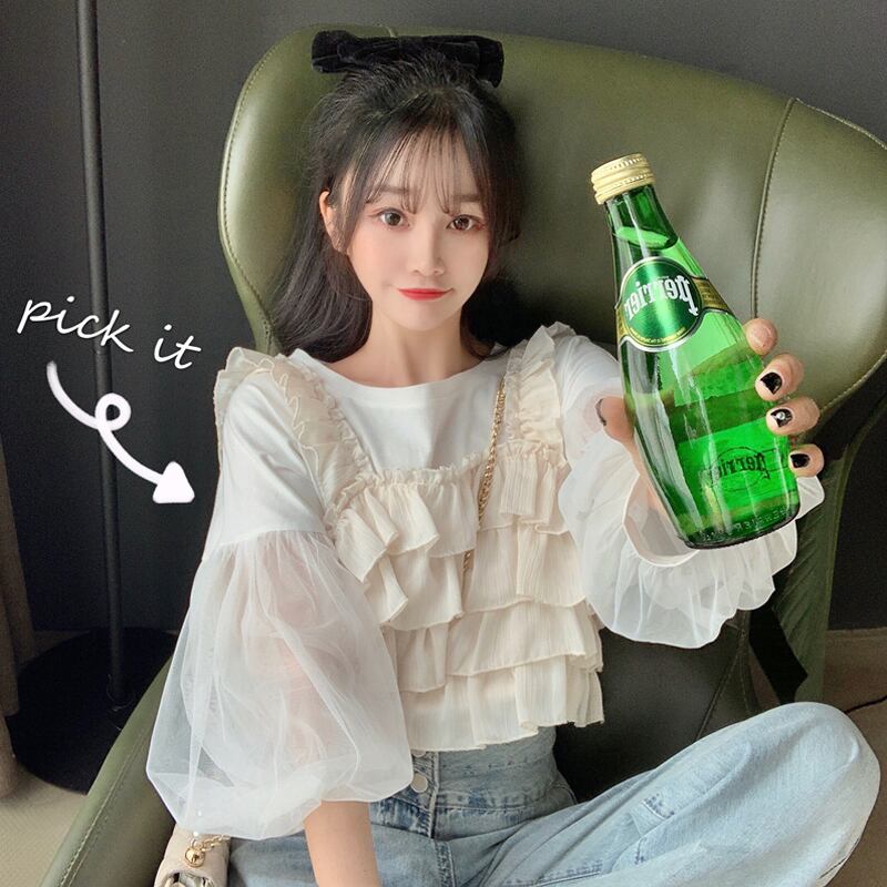 【韓国通販 dgo】メッシュスリーブ Tシャツ+スリングネット ツーピース 夏 女性 2020 次に欲しい!シースルー