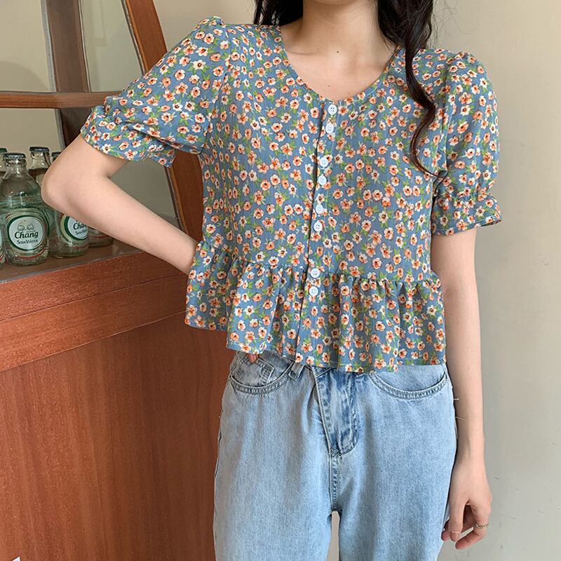 【韓国通販 dgo】2020年 夏 レトロ フローラル シャツ 女性 ショートトップ