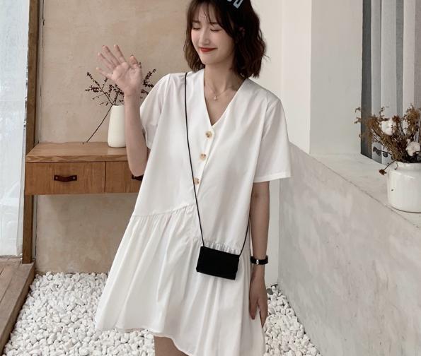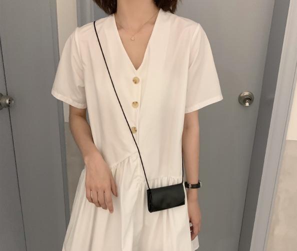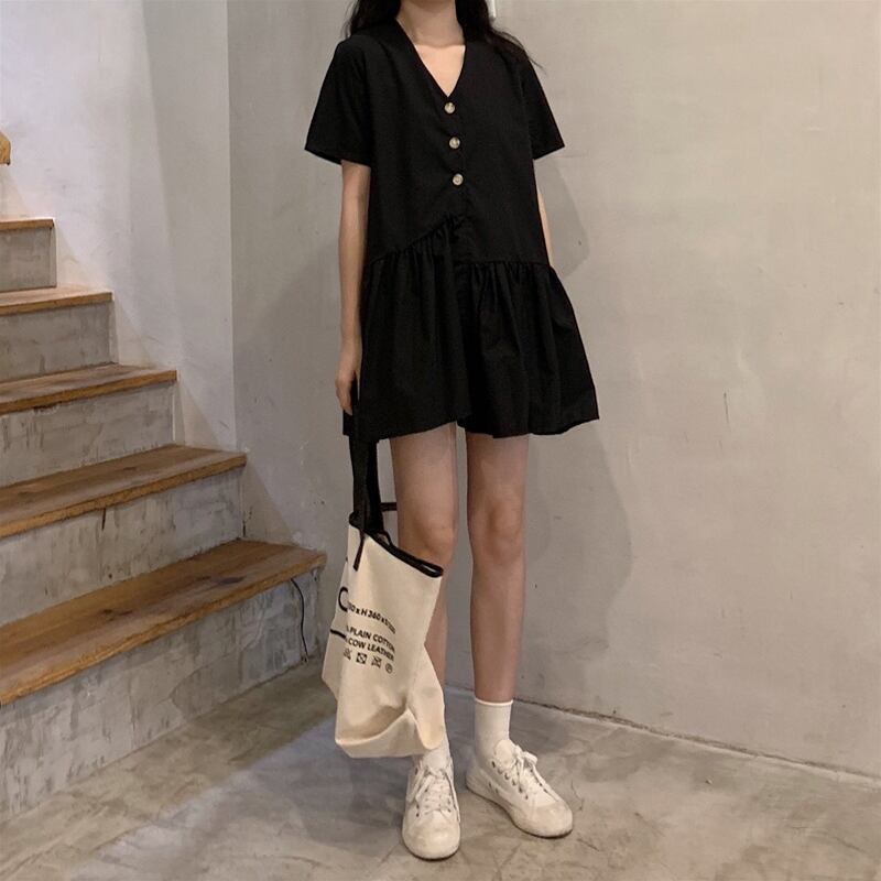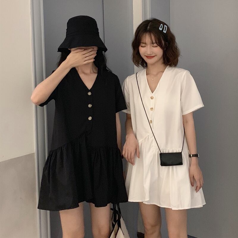 【韓国通販 dgo】Vネック Aラインスカート ワンピース ドレス 女性 レトロ 夏 2020 ホワイト ブラック