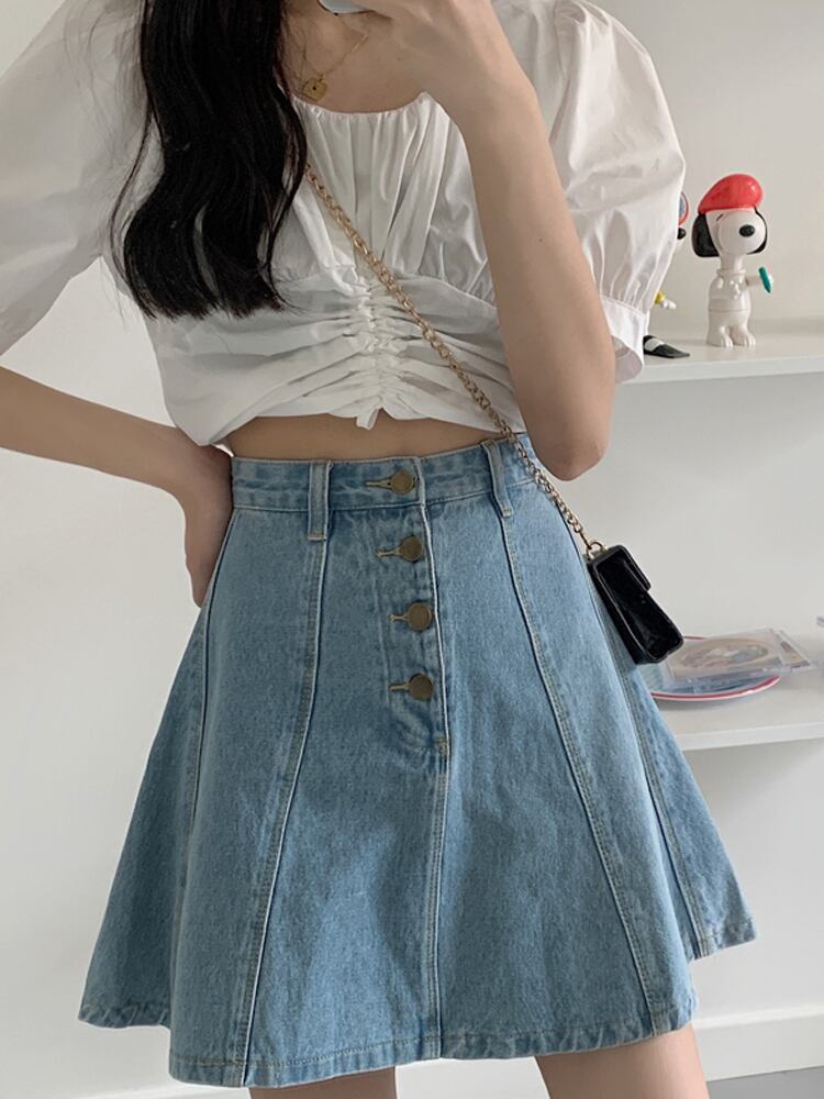 【韓国通販 dgo】シングルブレスト デニムスカート 夏 2020 ハイウエスト スカート Aライン ショートスカート(A1908)