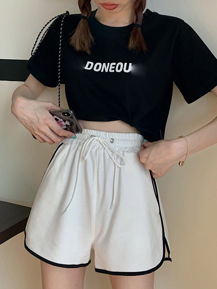 【韓国通販 dgo】夏 2020 ハイウエスト スポーツカジュアルショーツ 女性 ワイドレッグパンツ 夏の愛されショートパンツ(A1894)