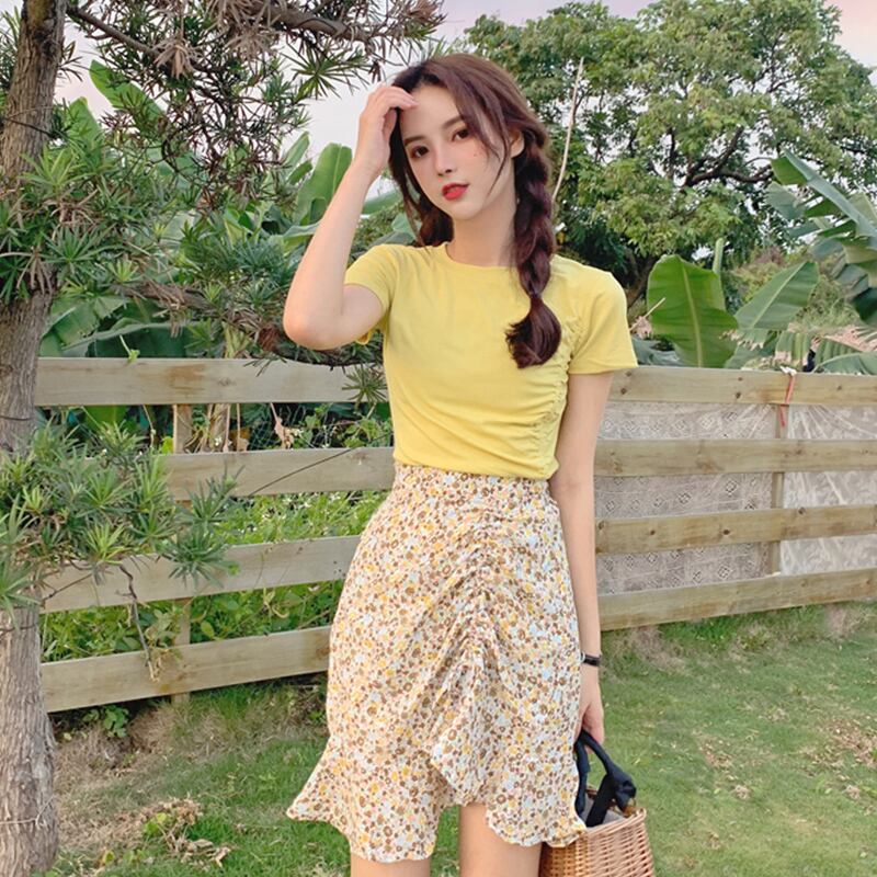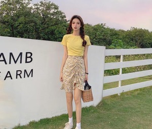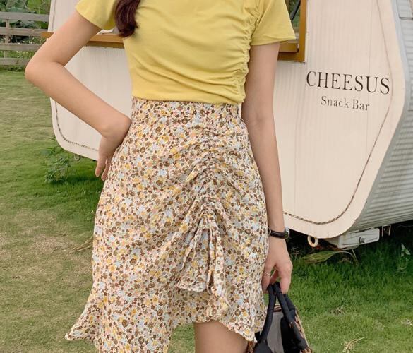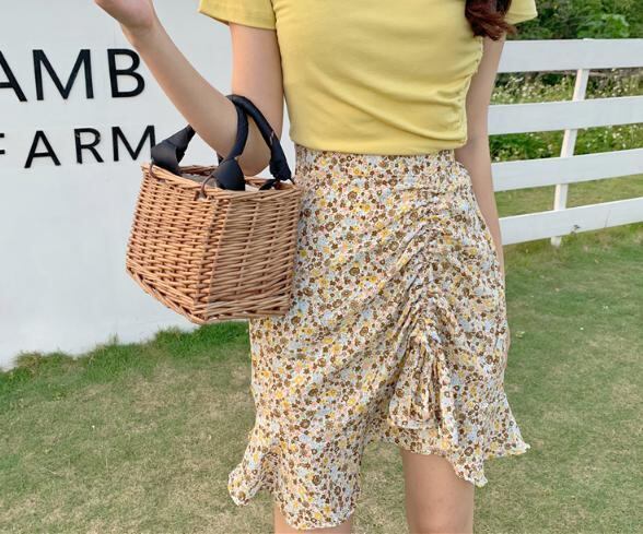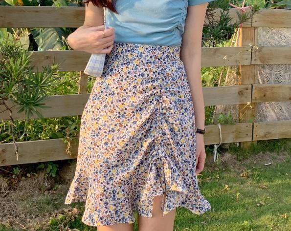 【韓国通販 dgo】プリーツフローラル ヒップスカート ハイウエスト 女性 ファッション 2020年 夏(A1876)