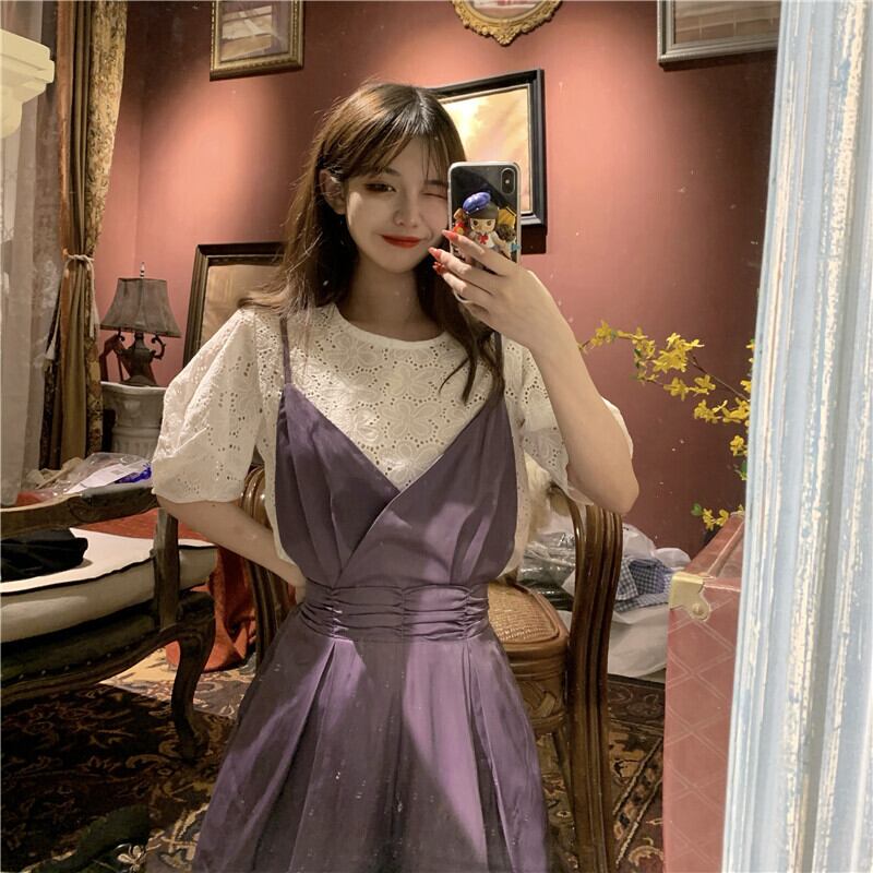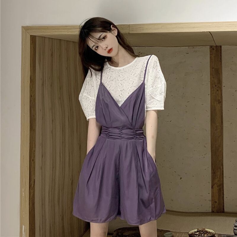 【韓国通販 dgo】ワイドレッグサスペンダー オールインワン 女性 夏 2020 レトロ (A1866)