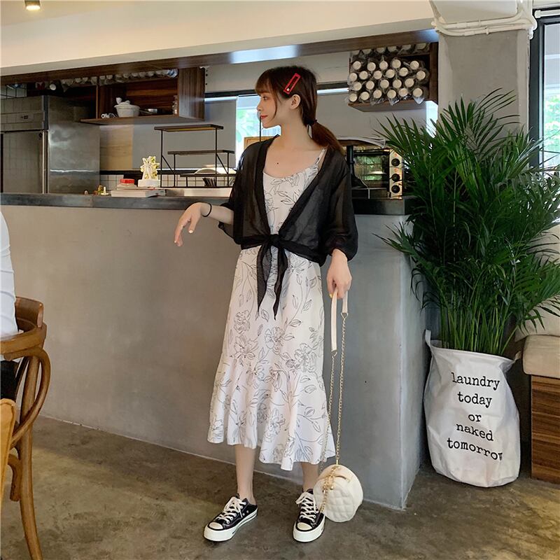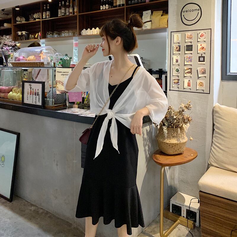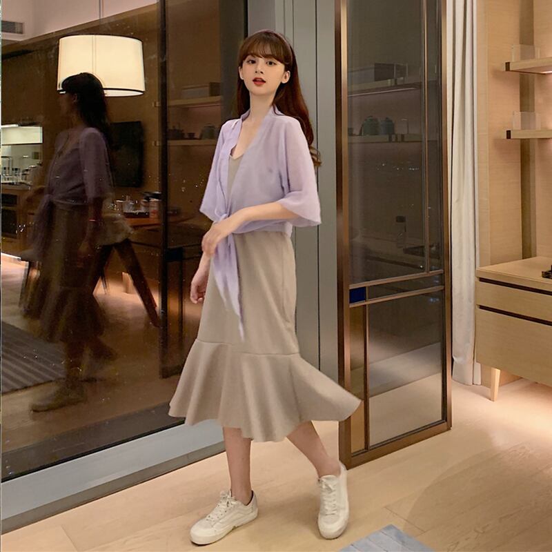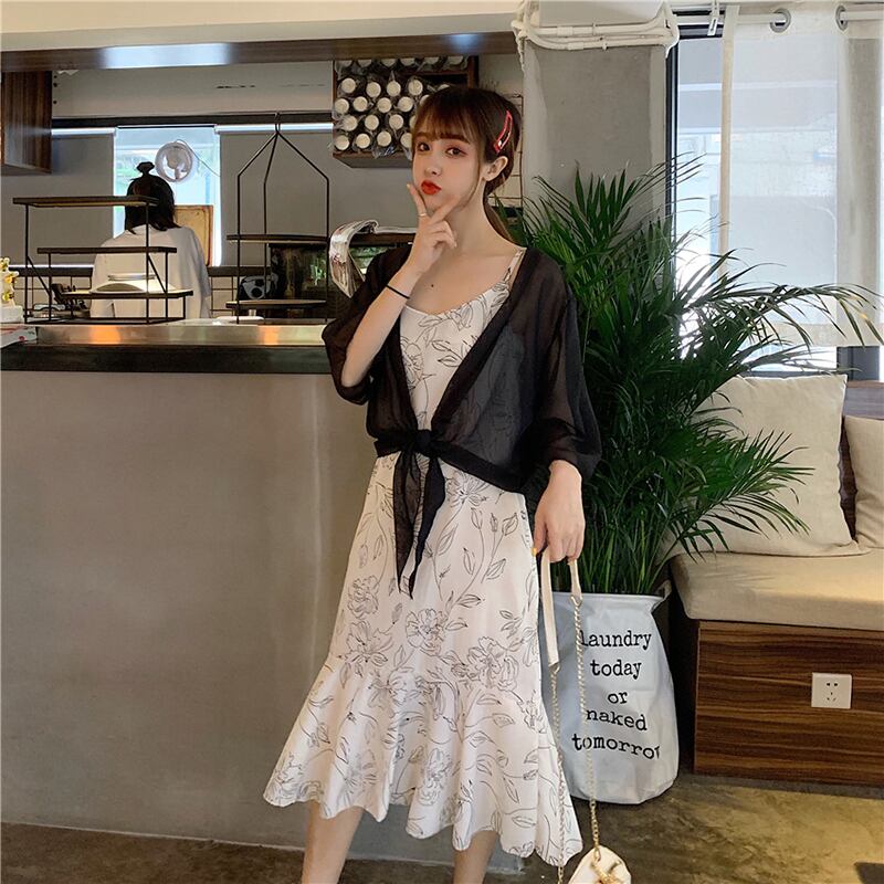 【韓国通販 dgo】ミッドロング シック 蓮の葉 ストラップ ワンピース ドレス 女性 ツーピース 夏 2020 ゆったりウエスト(A1836)