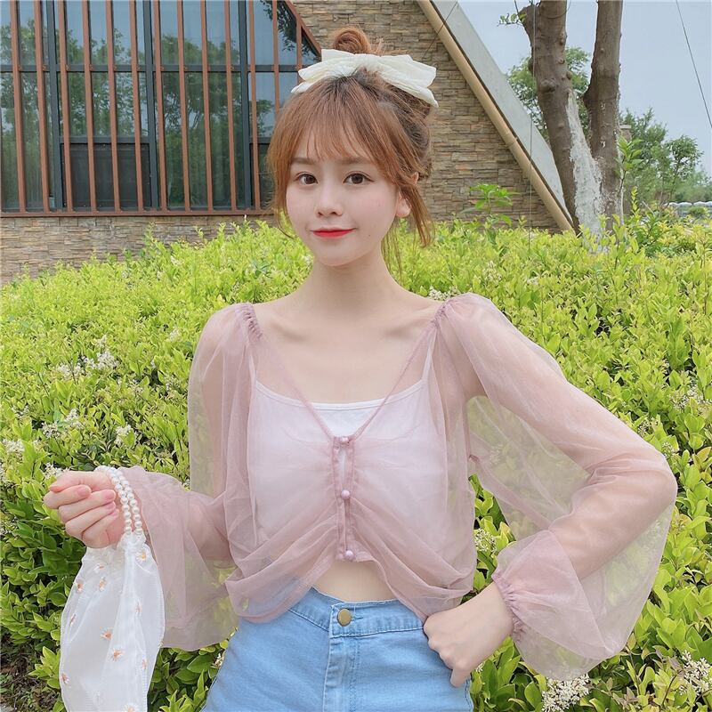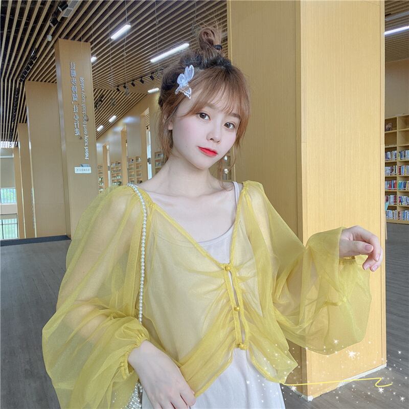 【韓国通販 dgo】ランタンスリーブ 日焼け止め 長袖 シフォンシャツ トップス 2020年 夏 (A1834)