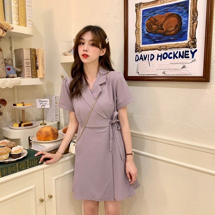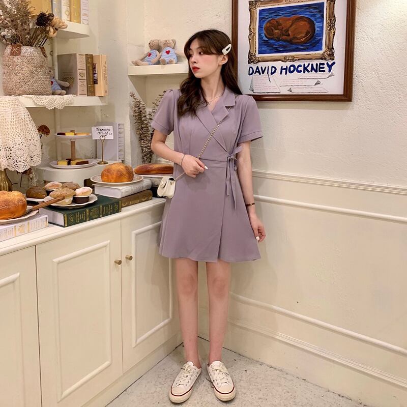 【韓国通販 dgo】ハイウエスト スリム ワンピース レース 半袖 フェミニンスカート 2020年 夏 新作 シック (A1806)