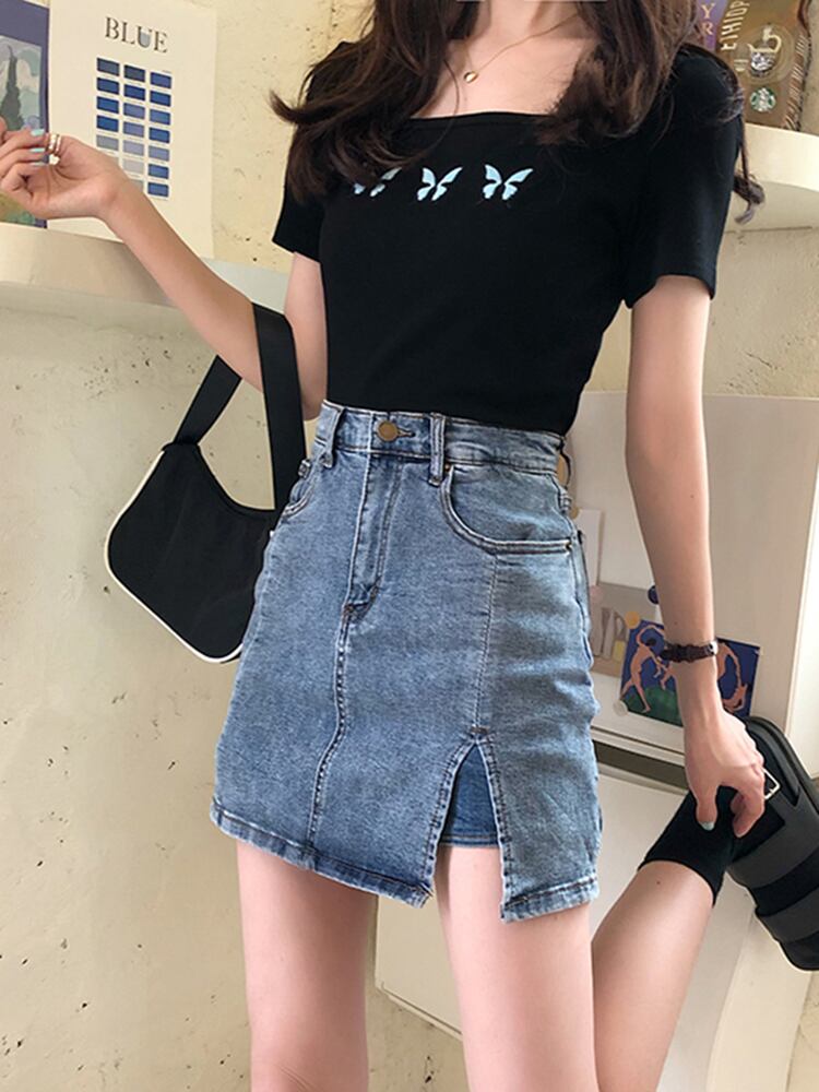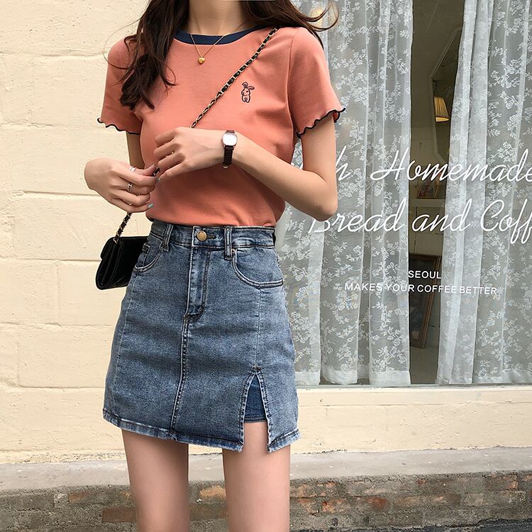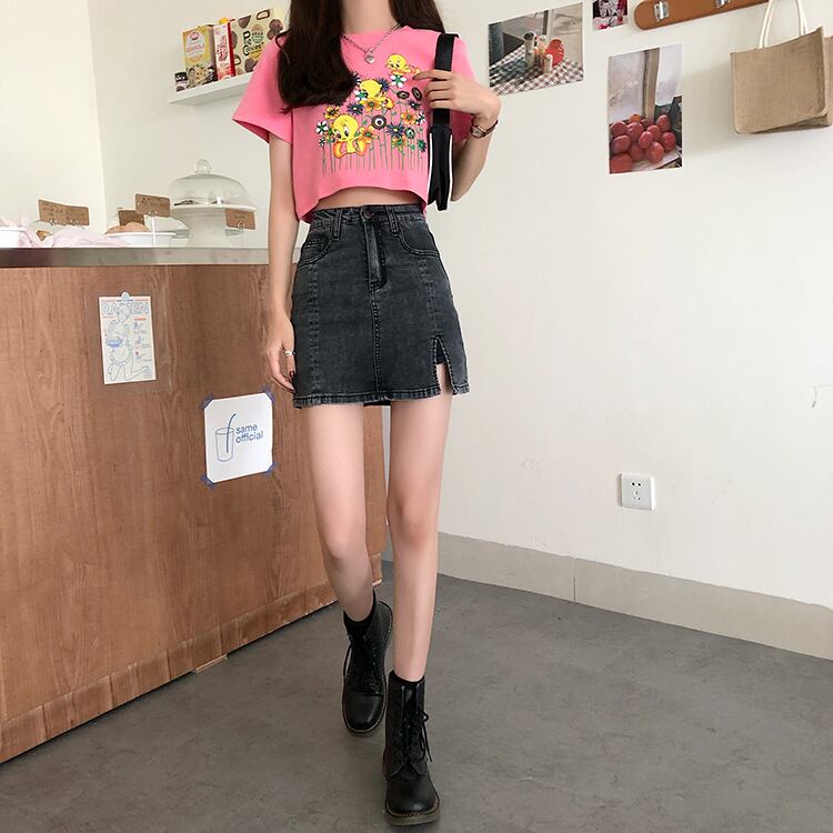 【韓国通販 dgo】ハイウエスト デニムショートスカート 女性 2020年 夏 ブラック ブルー(A1714)